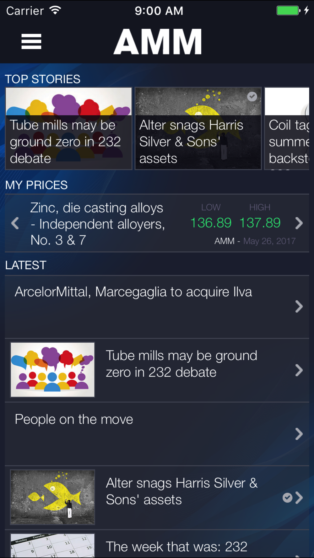 The American Metal Market app for iPhone gives you access to the latest steel, scrap and nonferrous metal news and pricing intelligence focusing on the North American markets.