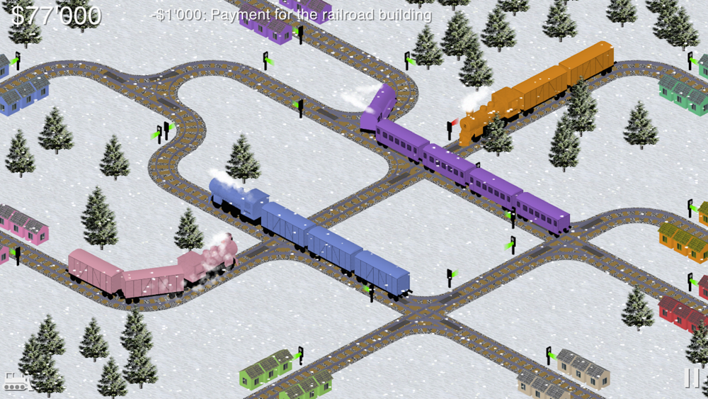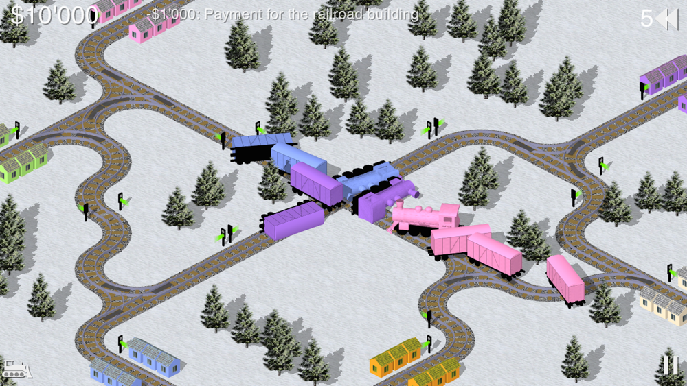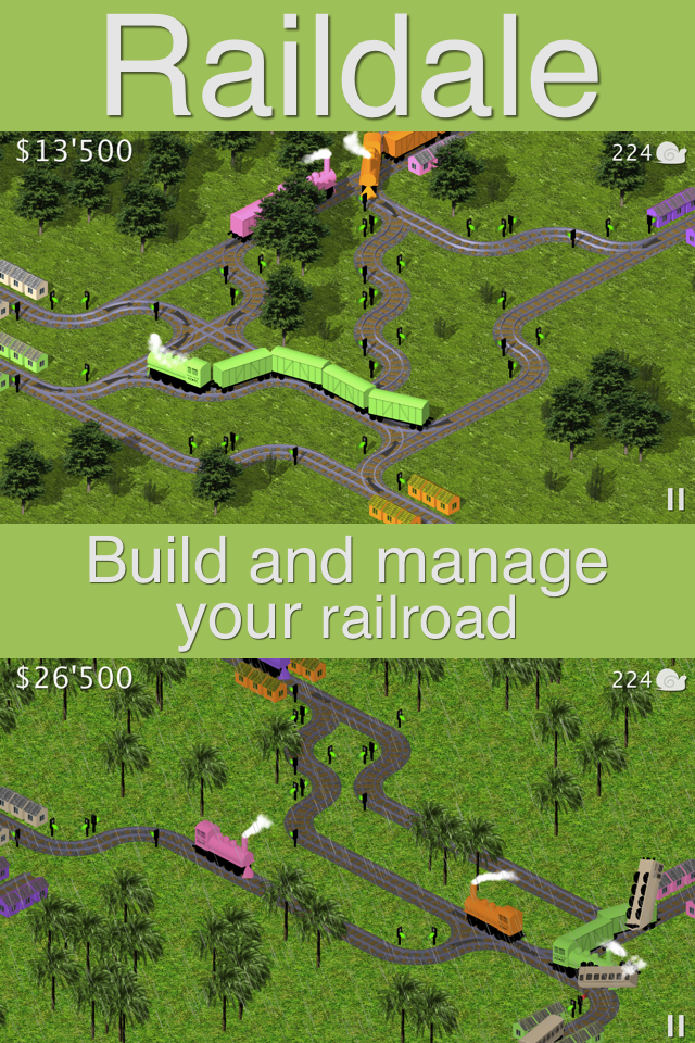 Raildale is an exciting railway building and development game. The rules of the game are rather simple: the gamer connects multi-color cities with railways. There are many features like new cities, switches and traffic lights, fines and rewards. The gamer has to prevent train crashes and go to same color cities. In case of train crash there are big fines to fix it. Gamers win the level in case of positive balance within a specific time frame.