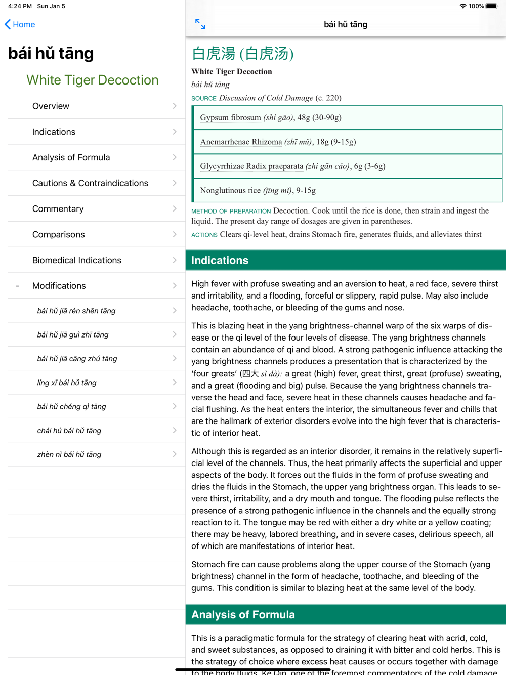 • Herbs and formulas are searchable by English, pinyin, or Chinese name.