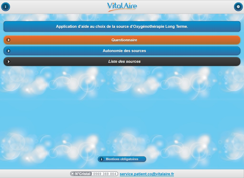 Application mobile d'aide au choix de la source et du forfait d'oxygénothérapie pour vos patients souffrant d'INSUFFISANCE RESPIRATOIRE CHRONIQUE, développée par VitalAire.