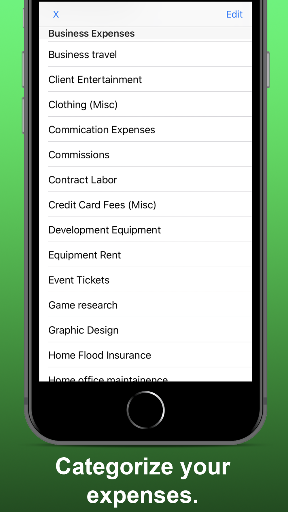 Track all of your business expenses using the same pre-defined categories that you will find in your tax software when you do your federal income taxes.