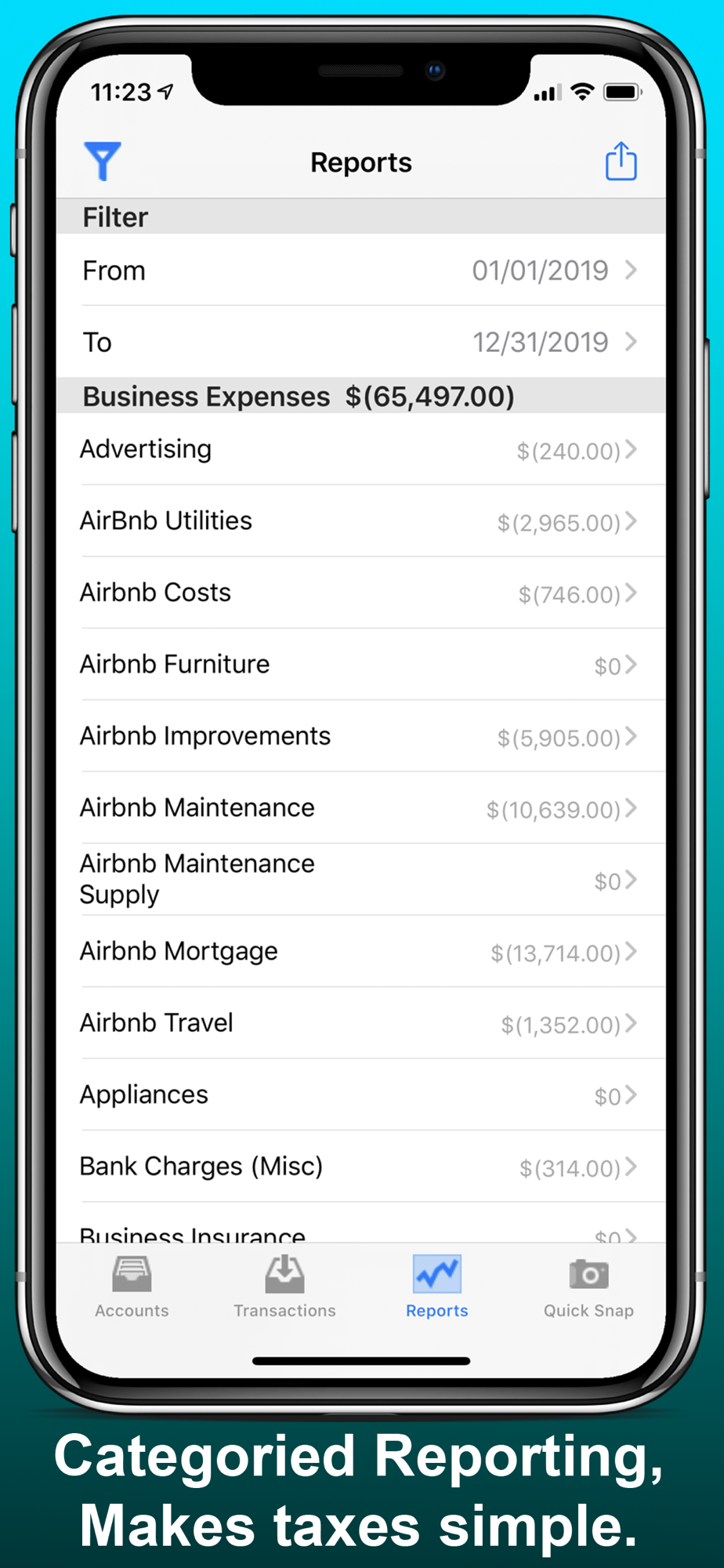 iAccountant is designed for money-savy consumers or small businesses to easily track their expenses, account balances and capture receipts for tax reporting and money management purposes.