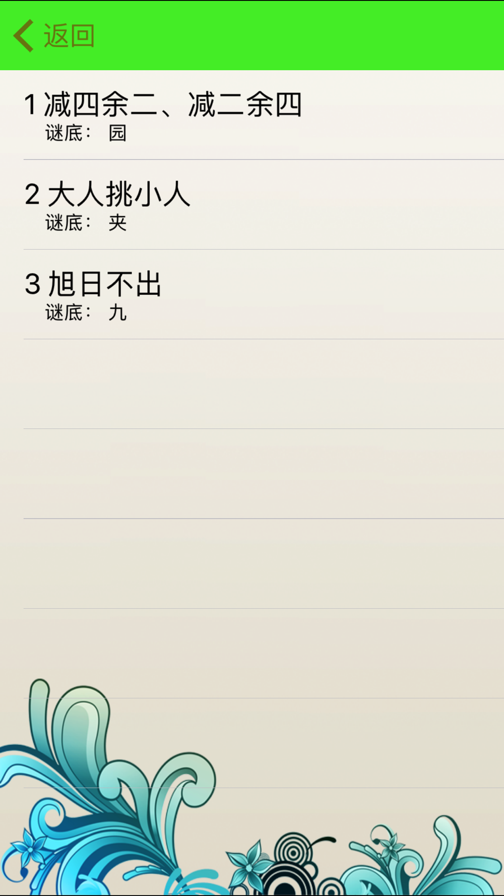 字谜达人收集了850多条字谜,并且都为单字字谜,固成为一字谜。