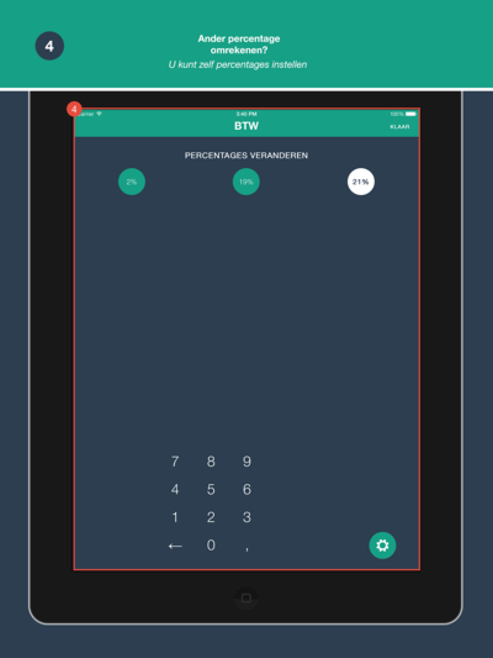 ◈ De percentages zijn aan te passen, waarbij ook kommagetallen mogelijk zijn. ◈