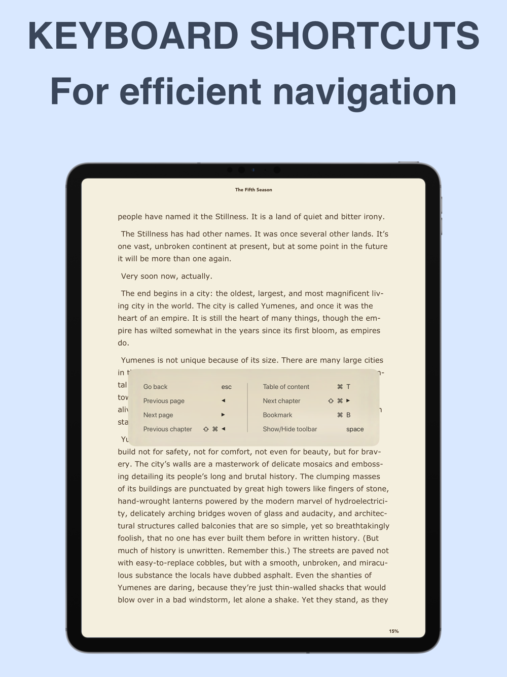 - Export your ebooks to any compatible iOS app through a share sheet