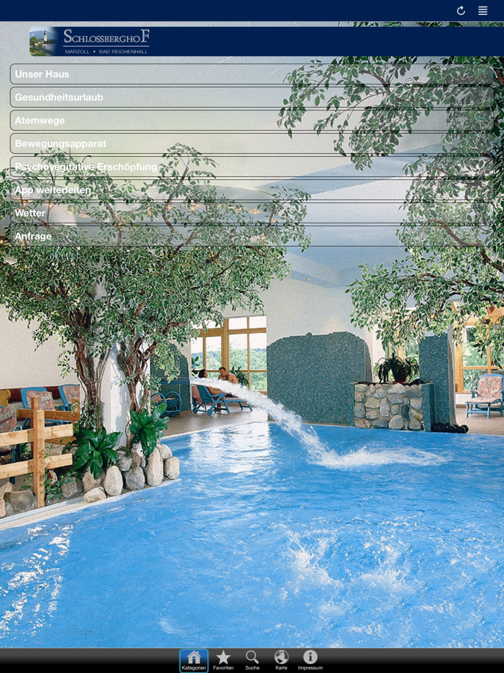 Mit der neuen Schlossberghof App entscheiden Sie, wann, wo und über was Sie informiert werden wollen. Pushmeldungen für Spezial Angebote im Gesundheitsbereich sorgen für Aktuelles auf Ihrem Handy oder Tablet Pc.