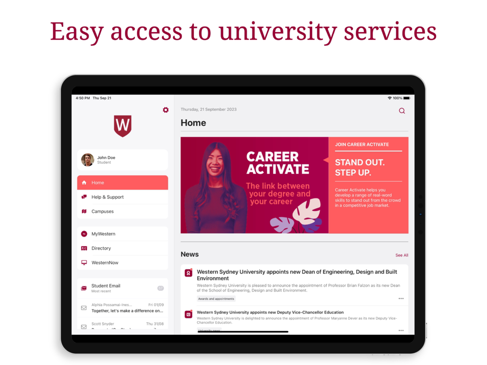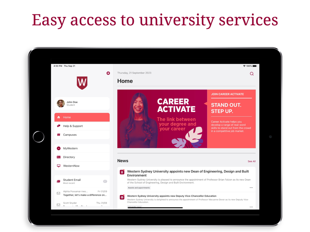 The Western Sydney University app gives you access to the latest information about the University in the palm of your hand.