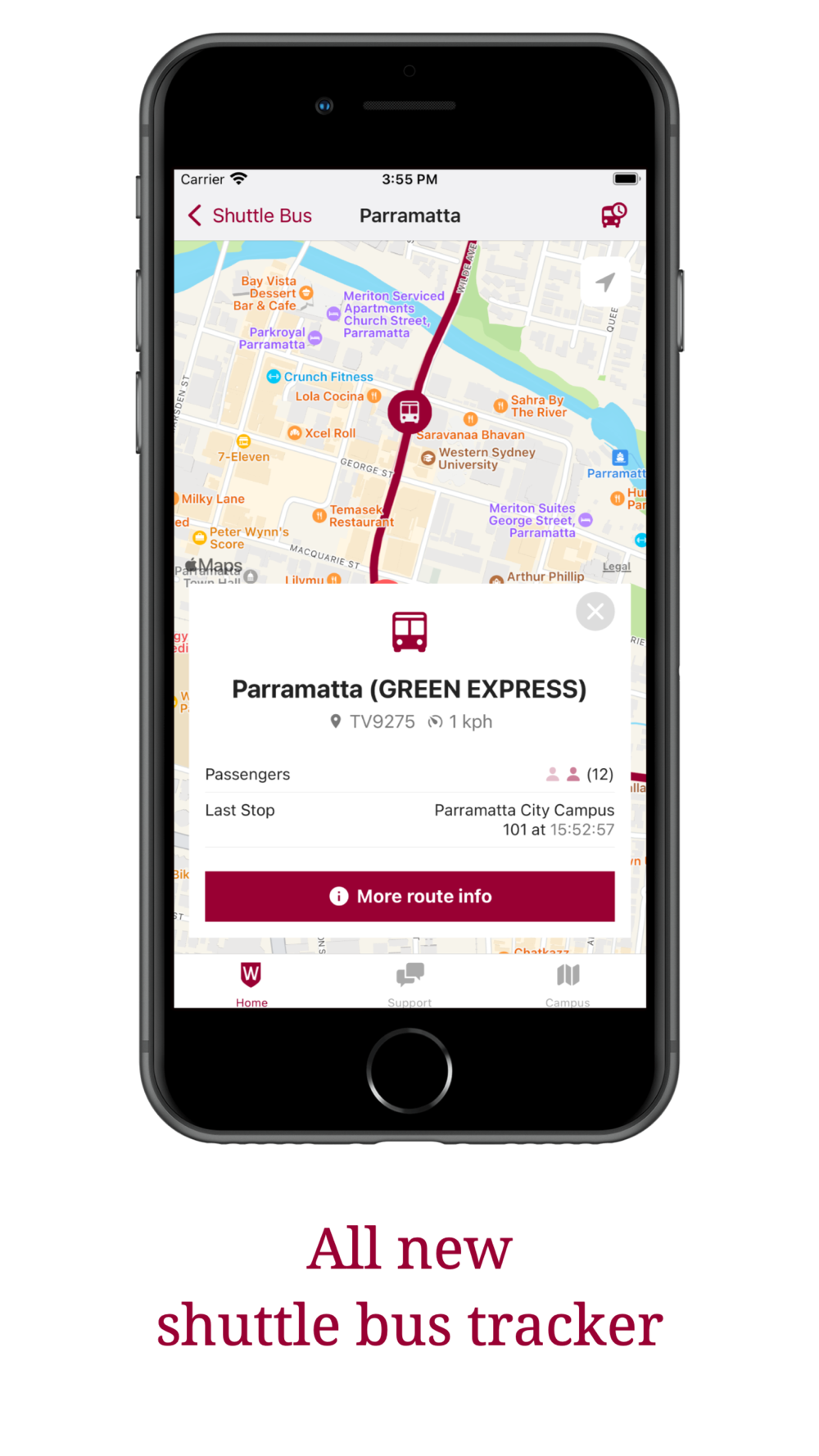 Shuttle - See where the campus Shuttle Buses are in real-time, and how many minutes they are away from your stop.