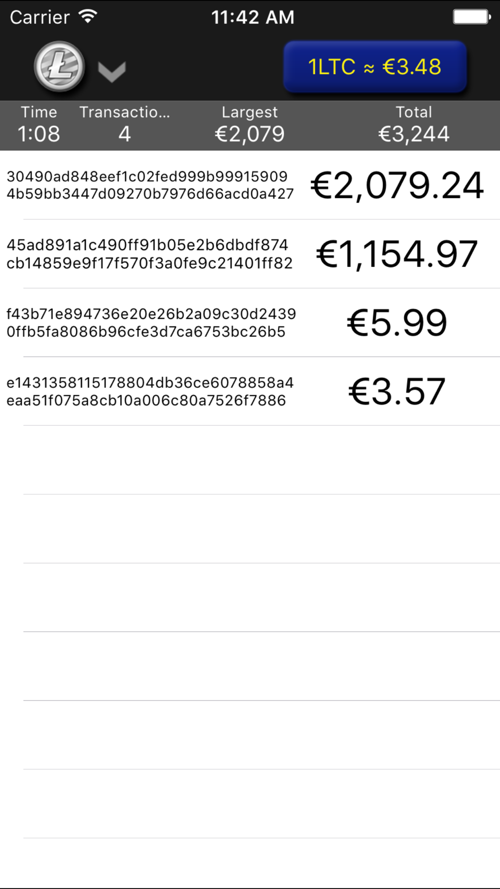 See the amounts of each transaction and convert it into US Dollars or Euros.