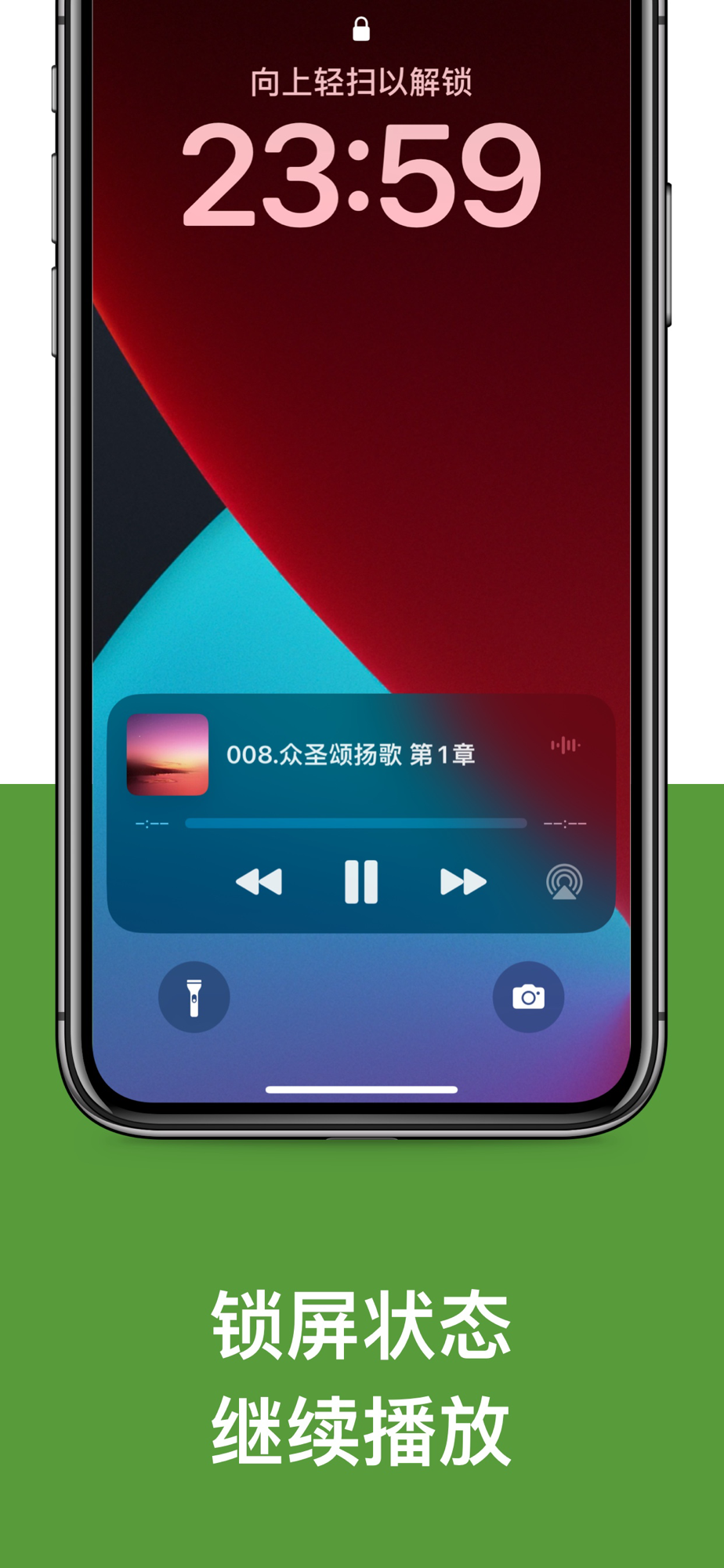 5、支持后台播放,锁屏播放,在关闭界面的状态下音乐仍可播放