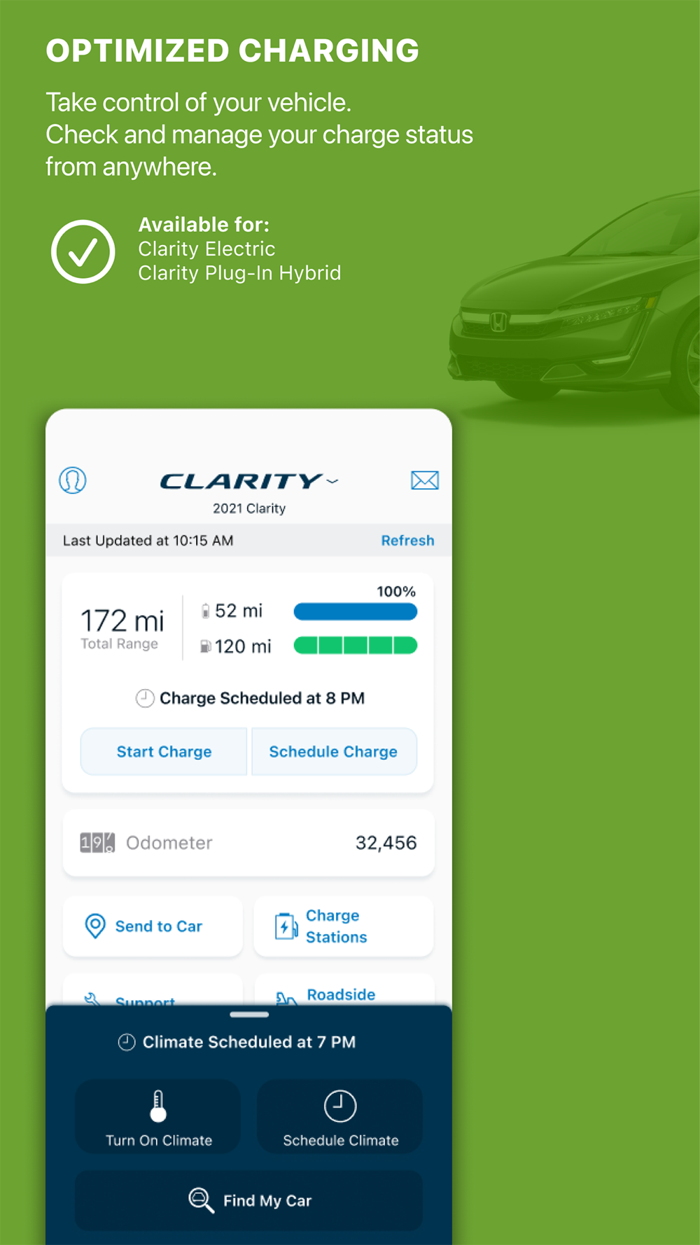The HondaLink® app has added new and exciting remote control features like Remote Engine Start, Remote Door Lock/Unlock, and Find My Car. Available for 2018+ Odyssey Touring/Elite, 2018-2022 Accord Touring and 2023+ Accord all trims, 2019+ Insight Touring, 2019+ Pilot Touring/Elite/Black Edition*, 2019+ Passport Touring/Elite*, 2023+ Civic Type R*, 2023+ CR-V Sport Touring Hybrid, and 2023+ Pilot Touring/Elite vehicles. Battery charge monitoring and control is available for Clarity Electric and Plug-in Hybrid vehicles.