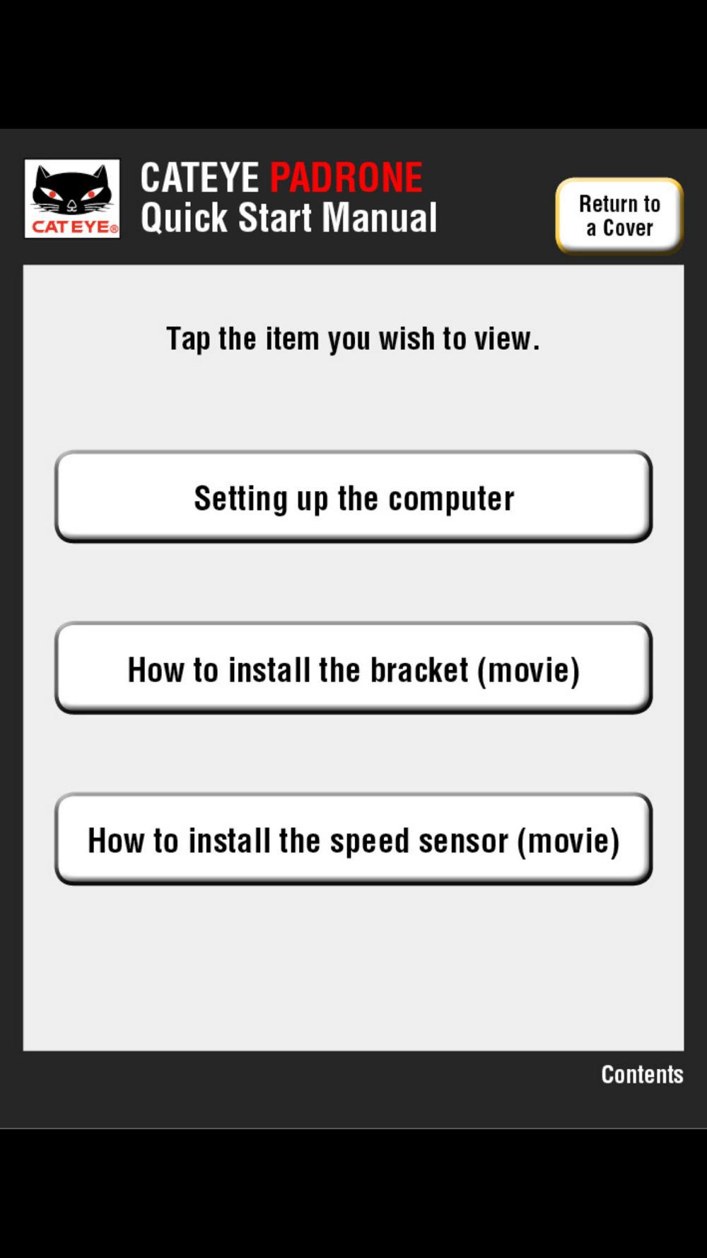 This Quick Start provides information on how to prepare the CATEYE Padrone with dedicated chapters such as Setting up the computer, How to install the sensor.