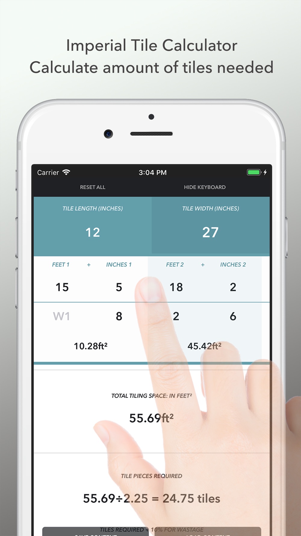 Our Universal Tile Calculator will helps by calculating the amount of tiles needed for up to 8 separate areas - with input options of either imperial (inches/feet) or metric (centimetres/millimetres) values.