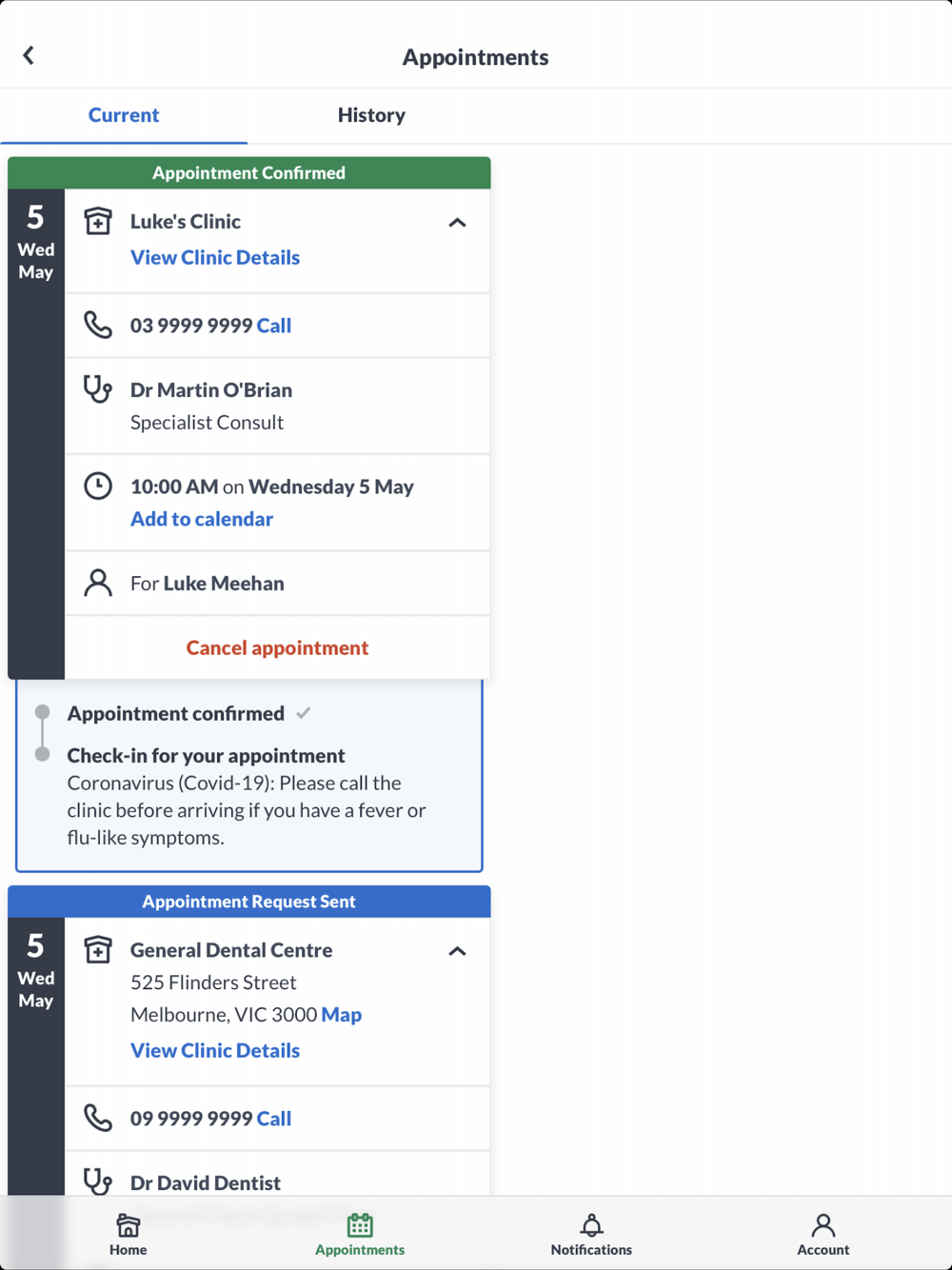 • Book a range of appointments such as dental check ups, skin checks, vaccinations and more