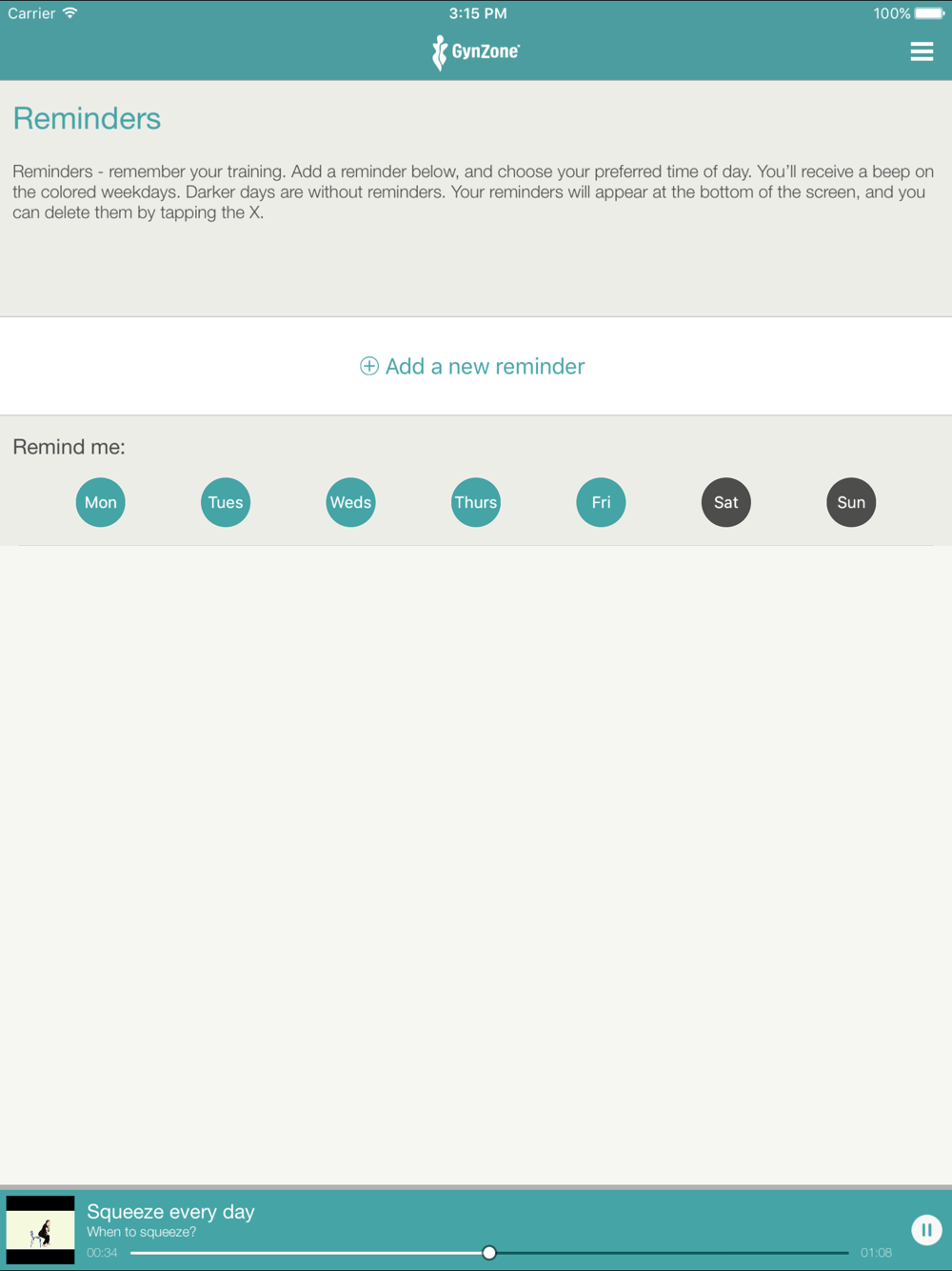 Use the App as a motivation for making pelvic floor exercises an integral part of your daily life. It is your tool to have at hand at all times. Now, you can squeeze correctly – anytime and anywhere.