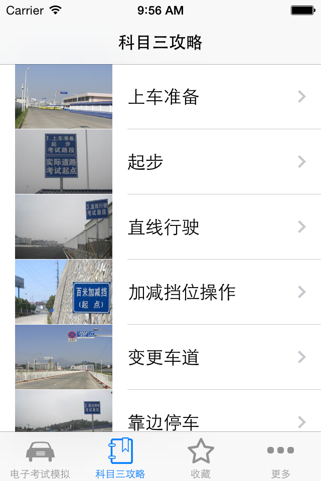 科目三考试由以前的科目三内容有上车准备、起步、直线行驶、变更车道、通过路口、靠边停车、通过人行横道线、通过学校区域、通过公共汽车站、会车、超车、掉头、夜间行驶13个道路驾驶技能项目再加上新增的加减挡位操作、路口左转弯、路口右转弯3个考试项目。