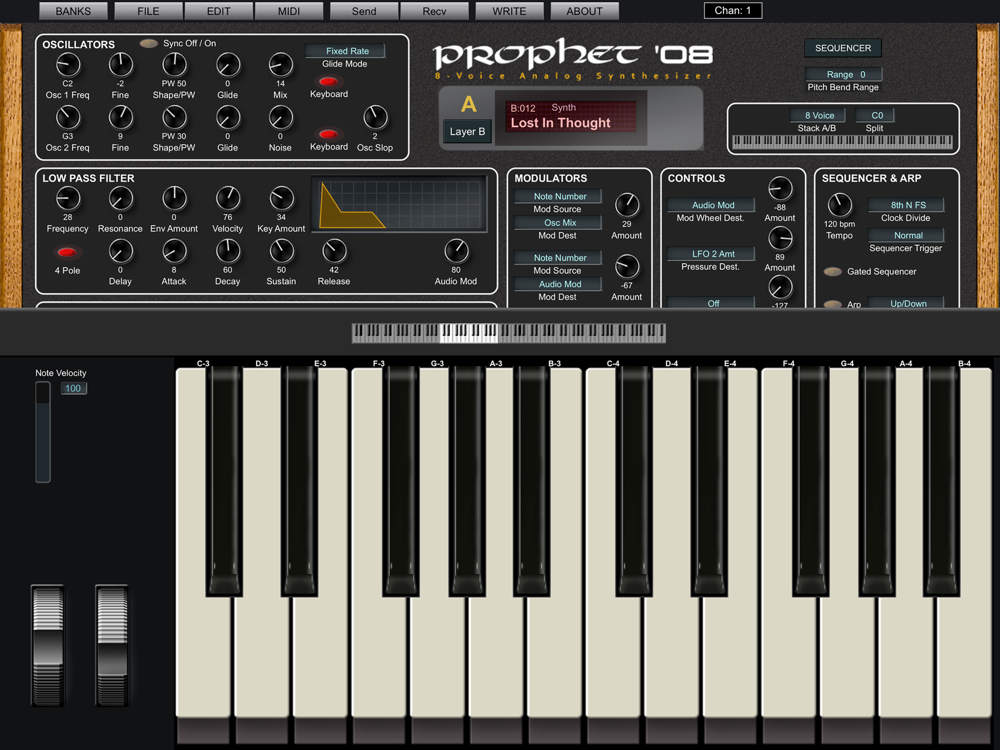 Prophet '08 Sound Editor provides the ultimate editing and sound development experience by displaying all Prophet '08 Program parameters in a single, intuitive, graphical interface. The interface resembles the look and feel of the real synthesizer while streamlining your workflow and allowing you to view the complete details of any Program at a glance and to edit any parameter using your iPad. It allows you to see how the factory Programs are put together or to freely experiment to see what you can create.
