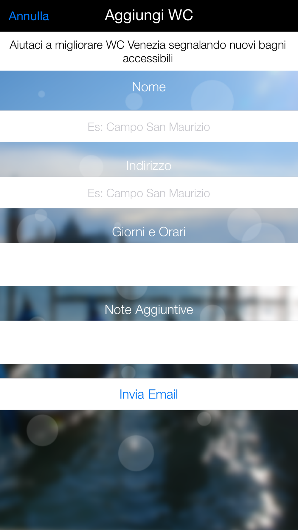 Help us make WC Venice more and more reliable and accurate by reporting different times from those listed, or by reporting Toilets or Drinking Fountains still not on the map.