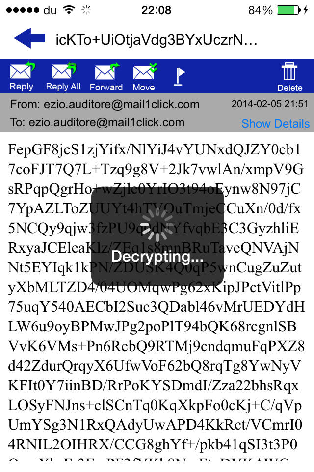 You can access your encrypted mailbox using your device or by the web mail interface available at: https://www.mail1click.com
