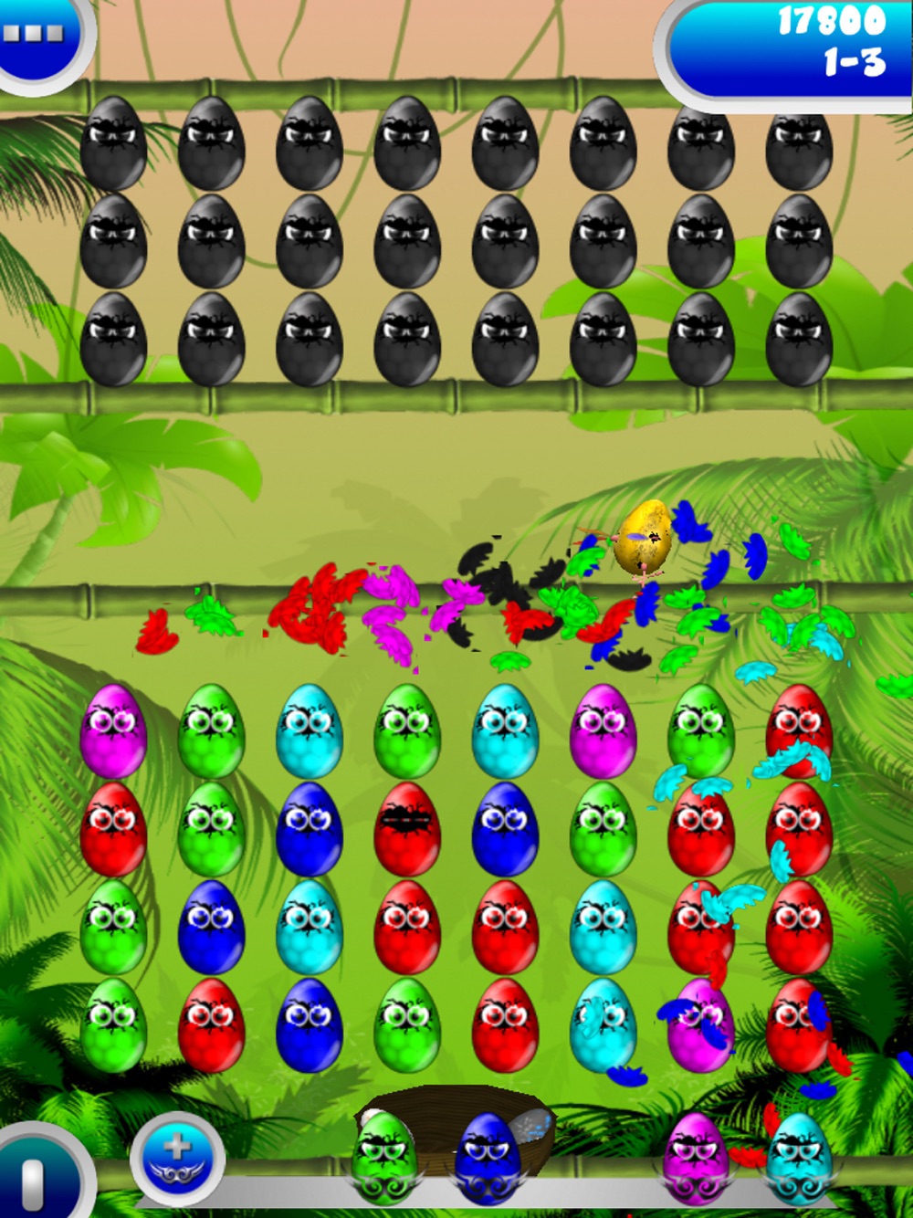 * Align the eggs same color removes the line and causes the descent of the bird.