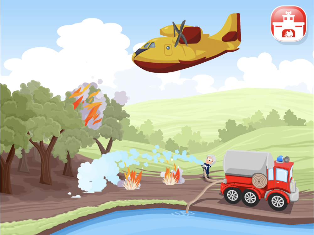 扑灭火焰,拯救生命, 这就是你们小小消防员的任务!与您的孩子一起 踏上消防员生涯的发现之旅,4个区域可选择,乐趣多多:队长办公室、停车棚、乡间火灾和城市火灾!