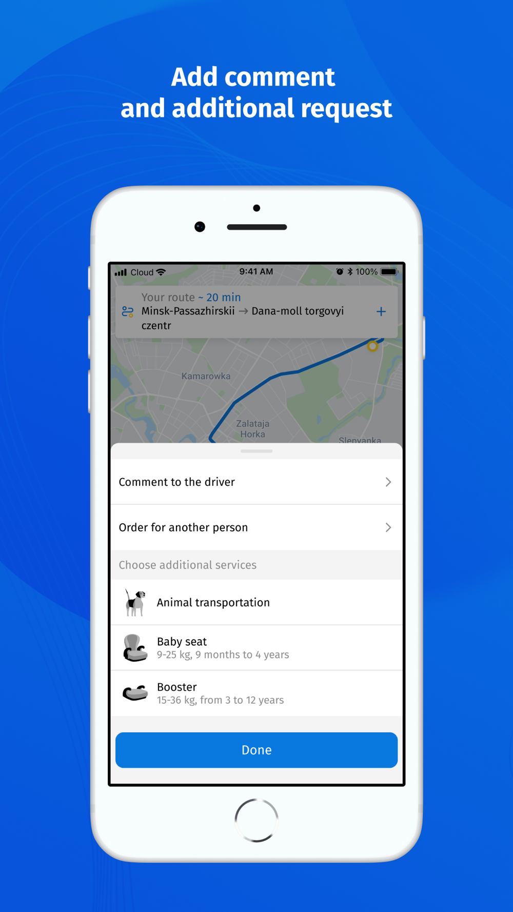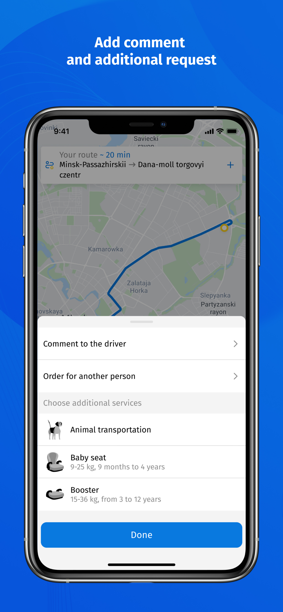 Every day we help riders move around Minsk comfortably and safely. Choose the car or service you need for your ride.