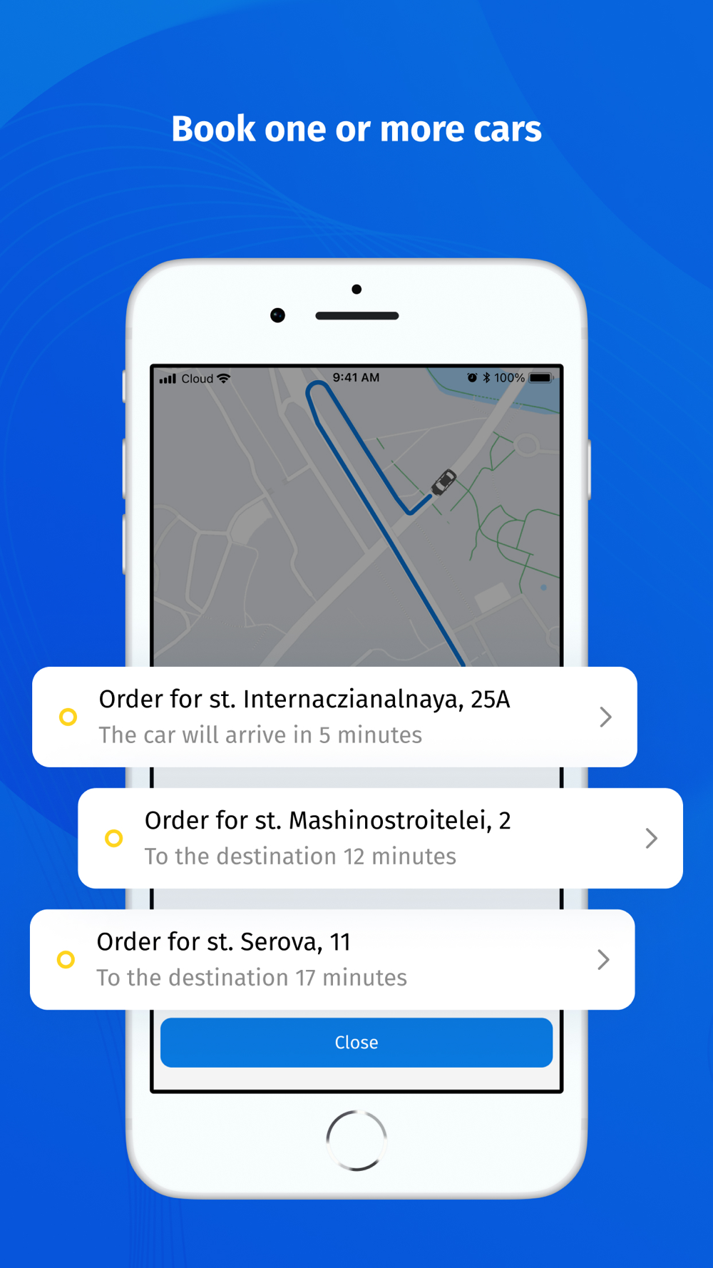 Delivery - send documents and small packages. The recipient will get SMS notifying about the approach of the car.