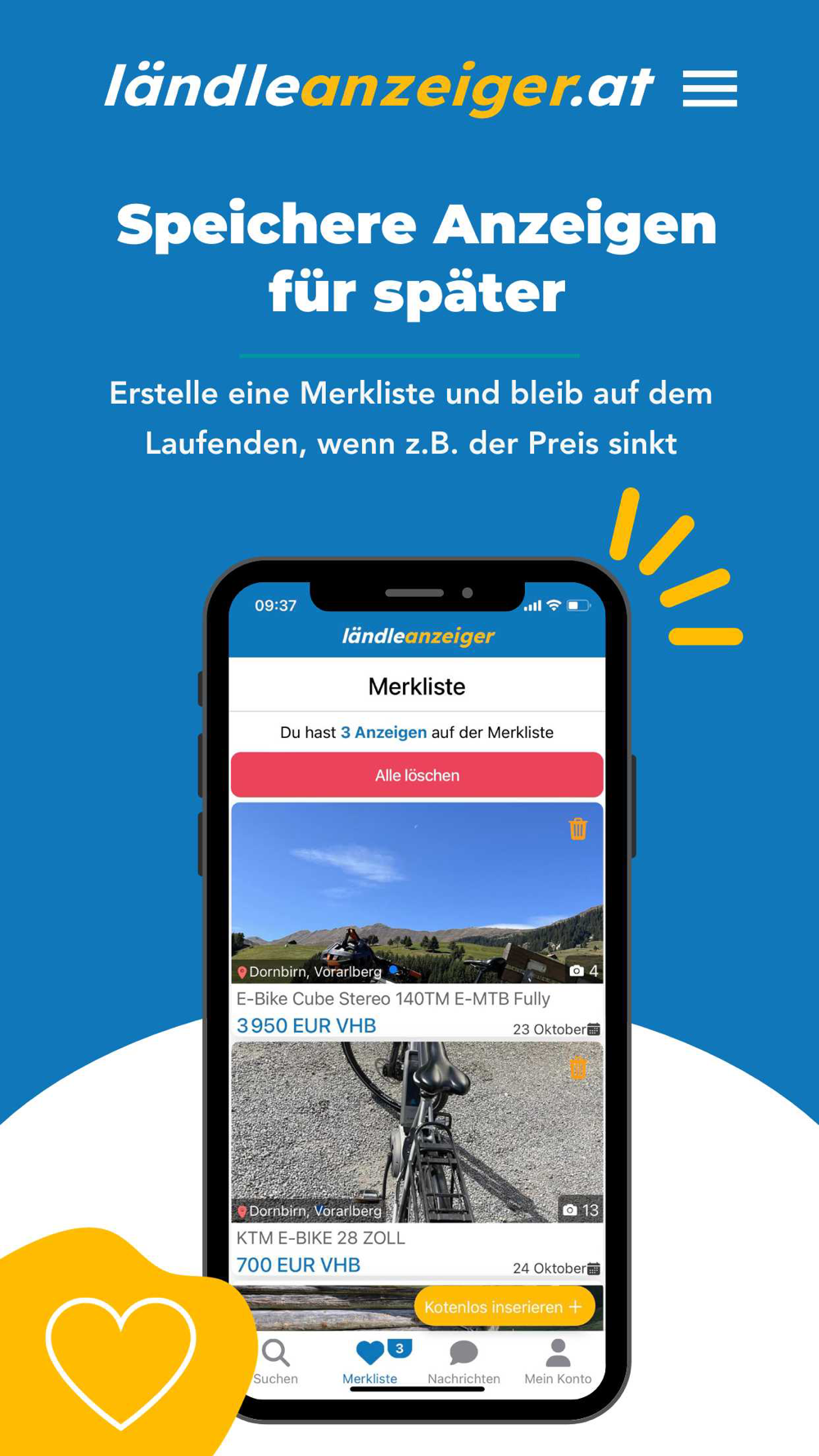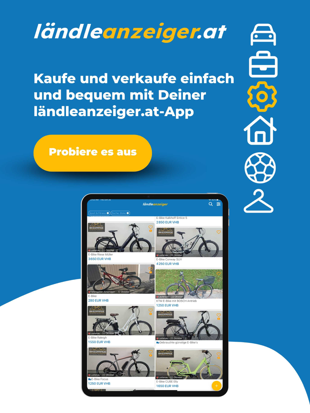 Die ländleanzeiger.at App ermöglicht es, alle Dinge des täglichen Lebens günstig zu kaufen und kostenlos zu verkaufen: gebraucht oder neu! Und das blitzschnell. Der Kleinanzeigenmarkt Vorarlbergs lädt zum Stöbern ein – von Gebrauchtwagen und Immobilien über Flohmarktartikel bis zu Reiseangeboten. Von privaten und gewerblichen Anbietern aus der Region.