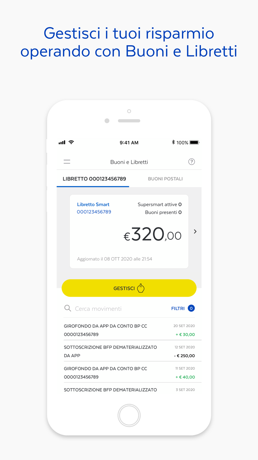 • Saldo e lista movimenti del Libretto Smart e Ordinario (quest’ultimo se abilitato online)