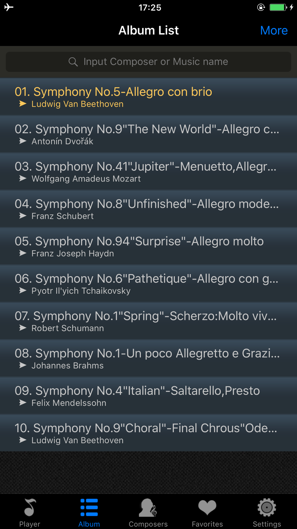 -Music list: By Composer, By Favorite and All
