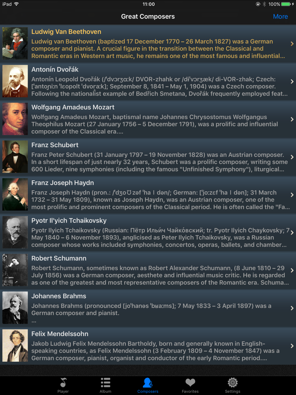 You can see the portraits of 9 great composers and read about them while listening to Top 10 Symphonies ever composed in human history.