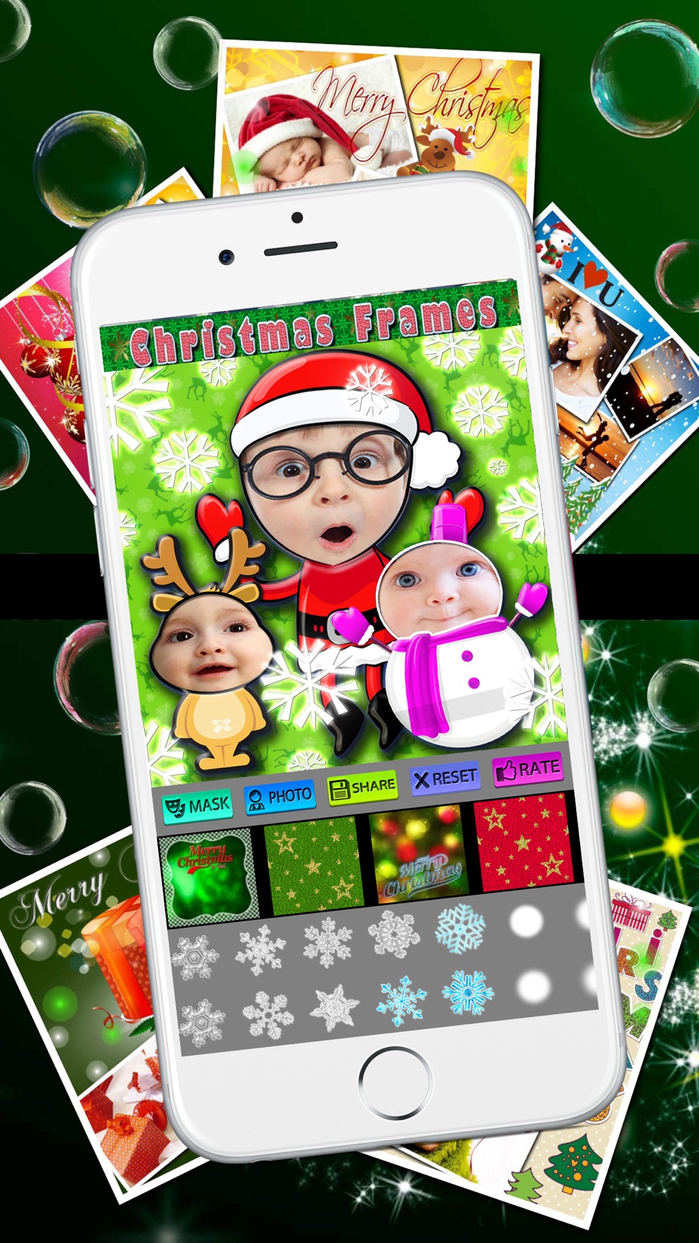 * Unique Christmas-style Photo masks (Santa Claus, Snowman) plus other fantastic masks (Star, Bubbles, Hearts & Flowers)