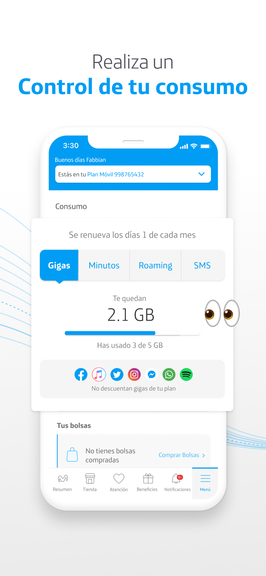 Conocerás la información del consumo de datos móviles, minutos hablados y SMS enviados, para que tengas mayor control sobre tus gastos ¡Consultar tus gigas disponibles de internet es mucho más simple ahora!