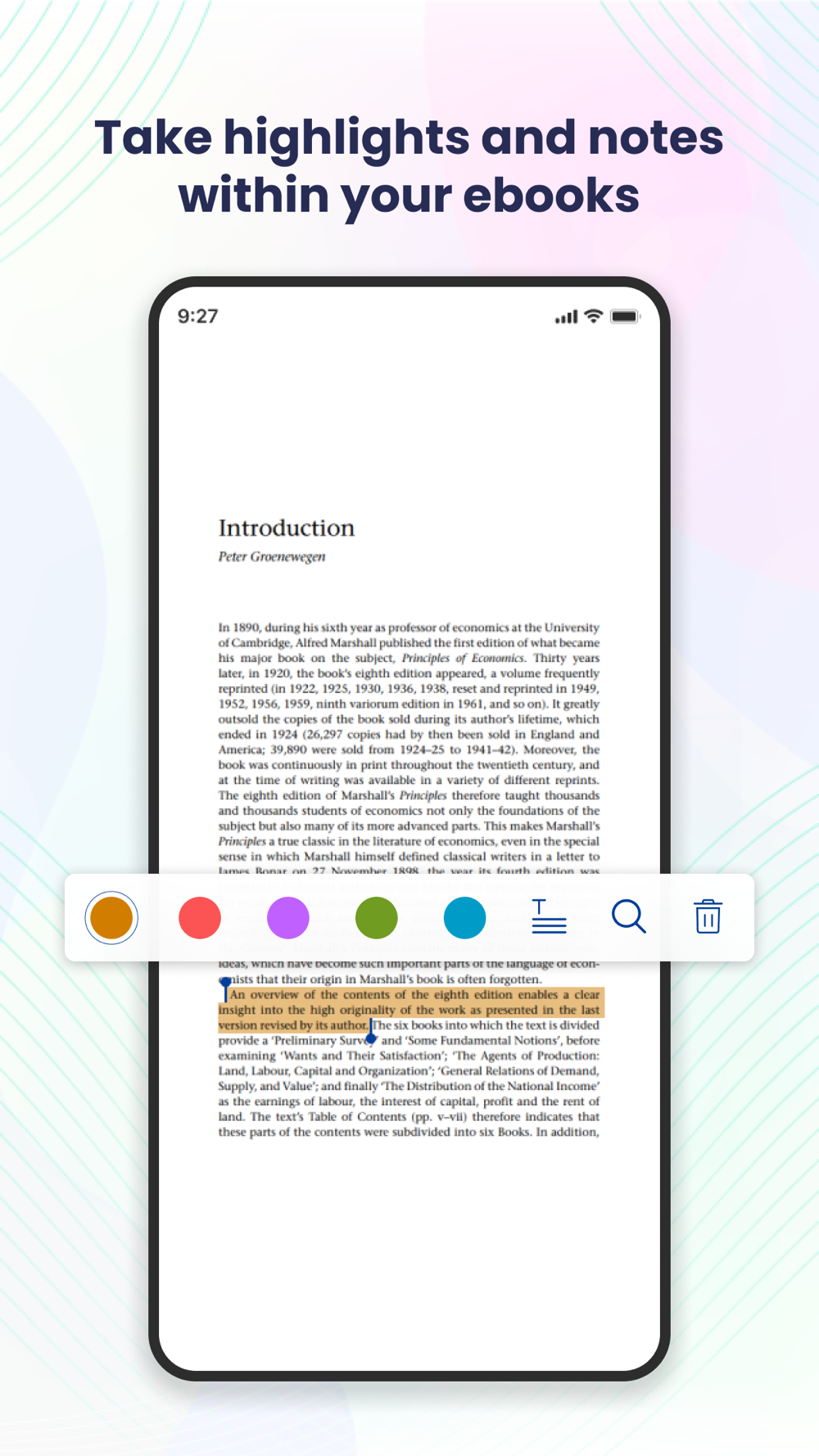 · Make contextual notes, highlight text and see them in a centralized section for easy reviewing.