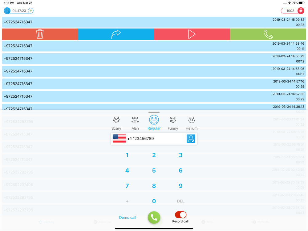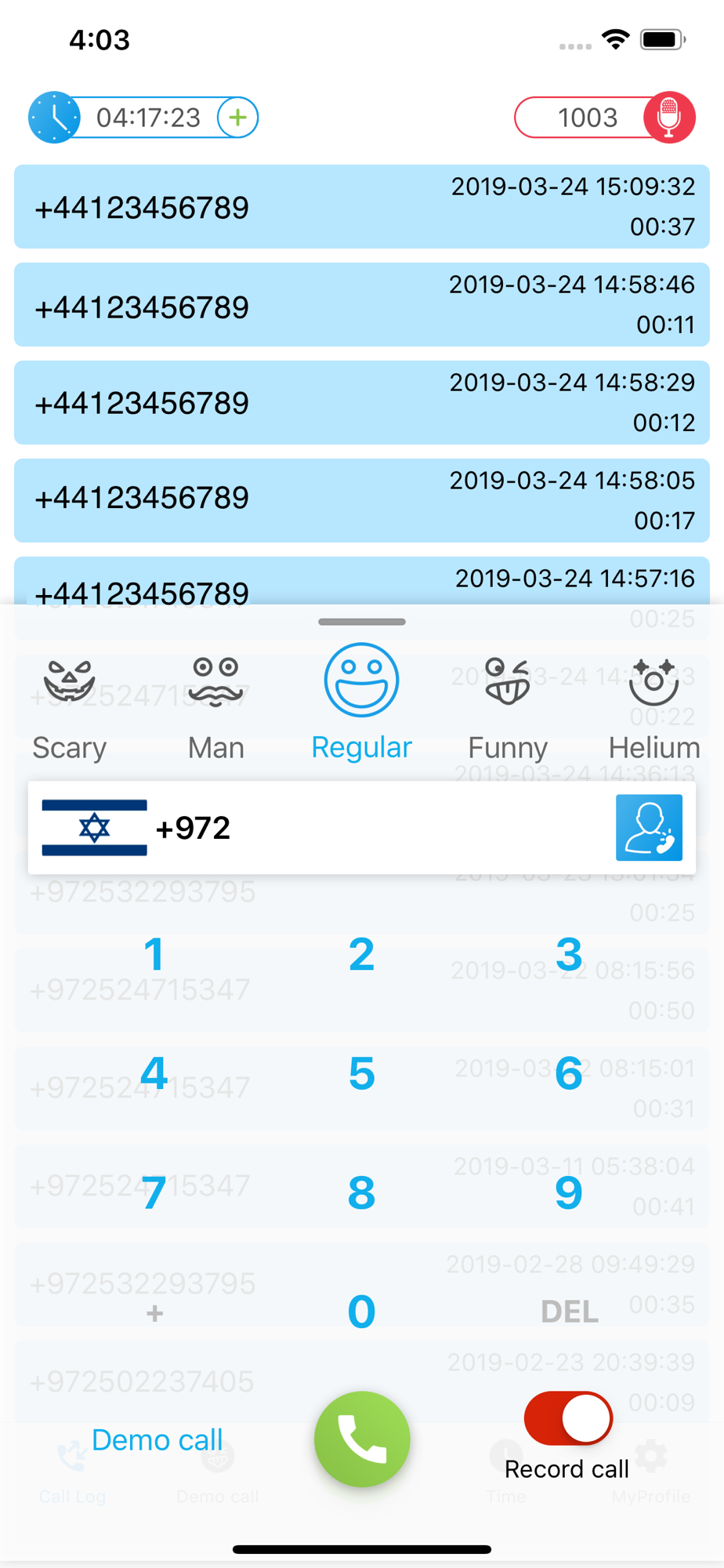 6. Make a DEMO call, hear your voice change and choose your next friend to make fun with.