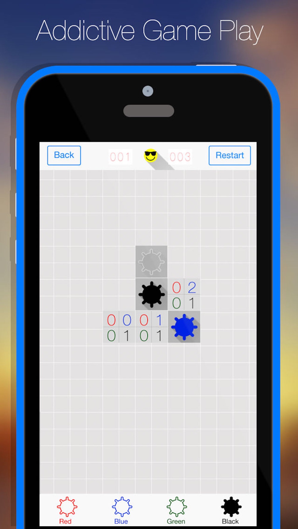 The game is inspired from the traditional game: Minesweeper. The logic is similar to the transitional Minesweeper game. However, there are 4 colored bombs and you are required to fill in the correct bombs into the blank boxes. Each puzzle has a clear solution.