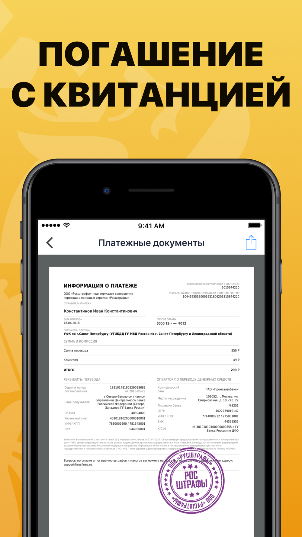 - удобная оплата штрафов прямо в приложении любой банковской картой (услуги по переводу денежных средств с использованием Системы оказывает ПАО «Промсвязьбанк» (лицензия Банка России № 3251);
