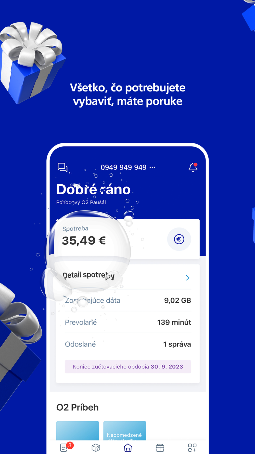 - získať okamžitý prehľad o prevolaných minútach a počte odoslaných správ