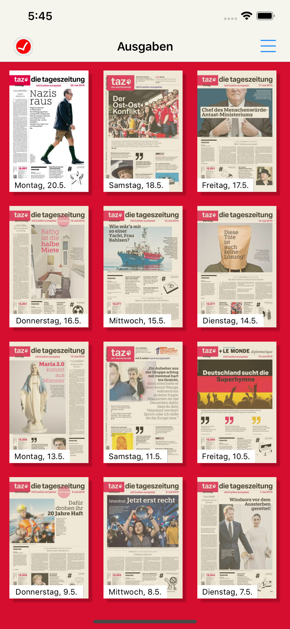Mit der taz-App bieten wir unseren AbonnentInnen die Möglichkeit, die aktuellen Ausgaben der taz unkompliziert zu lesen.