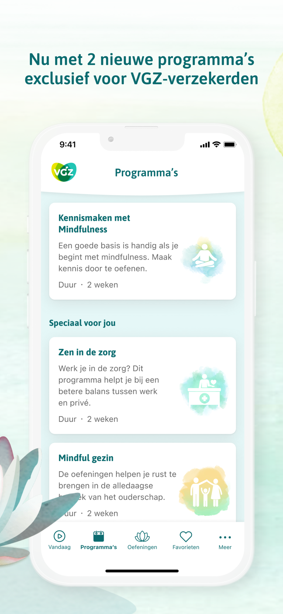 Met de VGZ Mindfulness Coach app leer je meer te leven in het nu. Kies een programma van 2 weken. Of volg één van de 100 losse oefeningen, van meditatie tot (kinder-)yoga. Allemaal in het Nederlands. Kies een stem (man of vrouw) en volg de oefening waar en wanneer je maar wilt. Er is altijd een oefening die past in jouw schema.