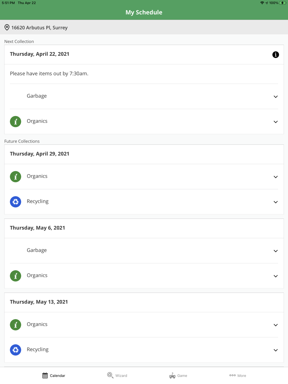Garbage and recycling schedules and reminders for the City of Surrey. View your garbage and recycling schedule and receive waste collection reminders all from within this app.
