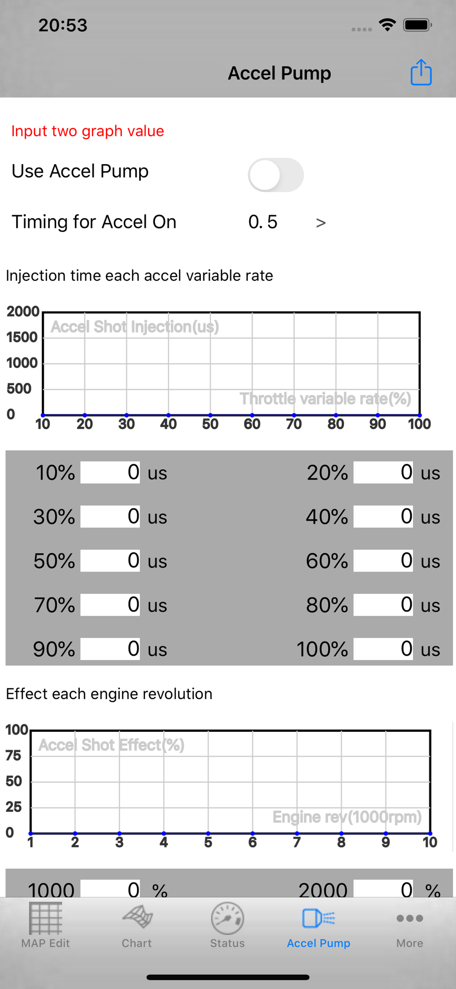 - The maximum 2500micro seconds the engine rotation and throttle position for each fuel injection increase / decrease can edit and write-read.