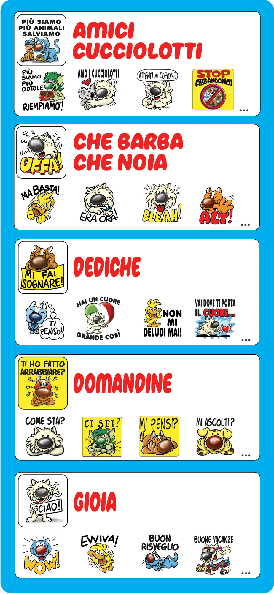 ● Gli Stickers Amici Cucciolotti renderanno le tue chat ancora più originali, simpatiche e coinvolgenti perché arrivano dritti al cuore di chi li riceve.