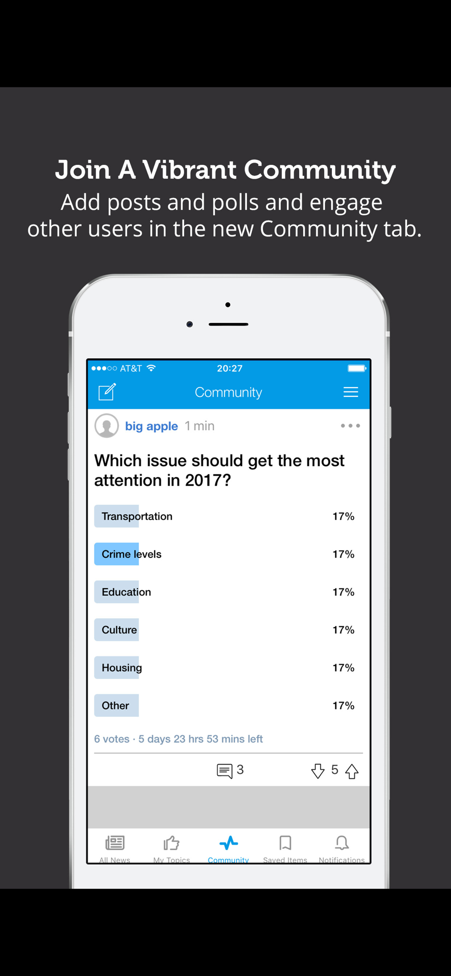 * Join a Community of fellow New Yorkers! Post stories or polls, comment on stories, and tag articles!
