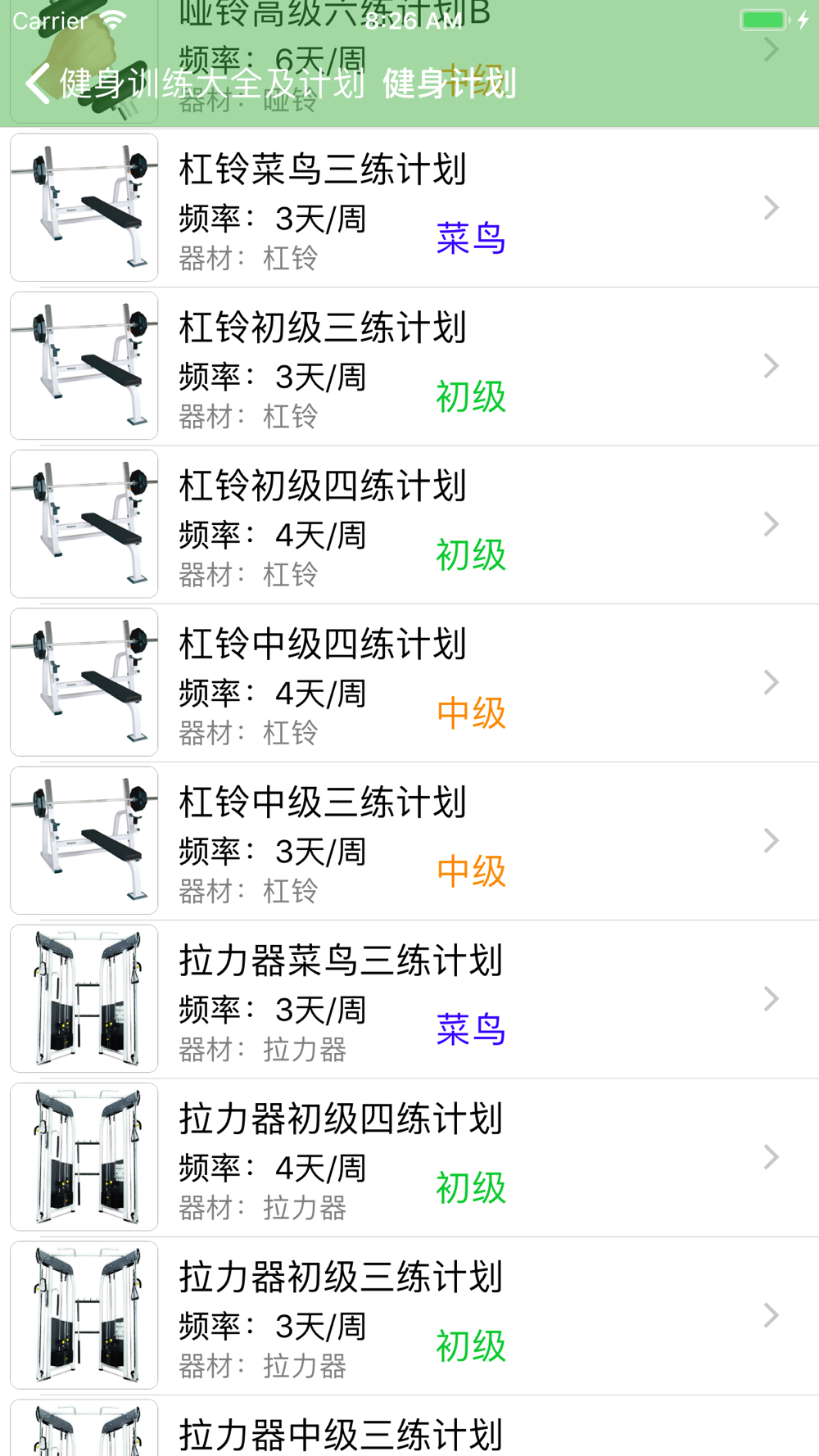 健身大全及计划是一款针对健身爱好者的健身应用。训练部位包括背部、胸肌、手臂、肩部、腿部、腹部等,器材包括哑铃、杠铃、拉力器、综合器械等140多个的训练项目,可以按照训练计划进行完成,项目也可以在家里通过哑铃和拉力器等完成。
