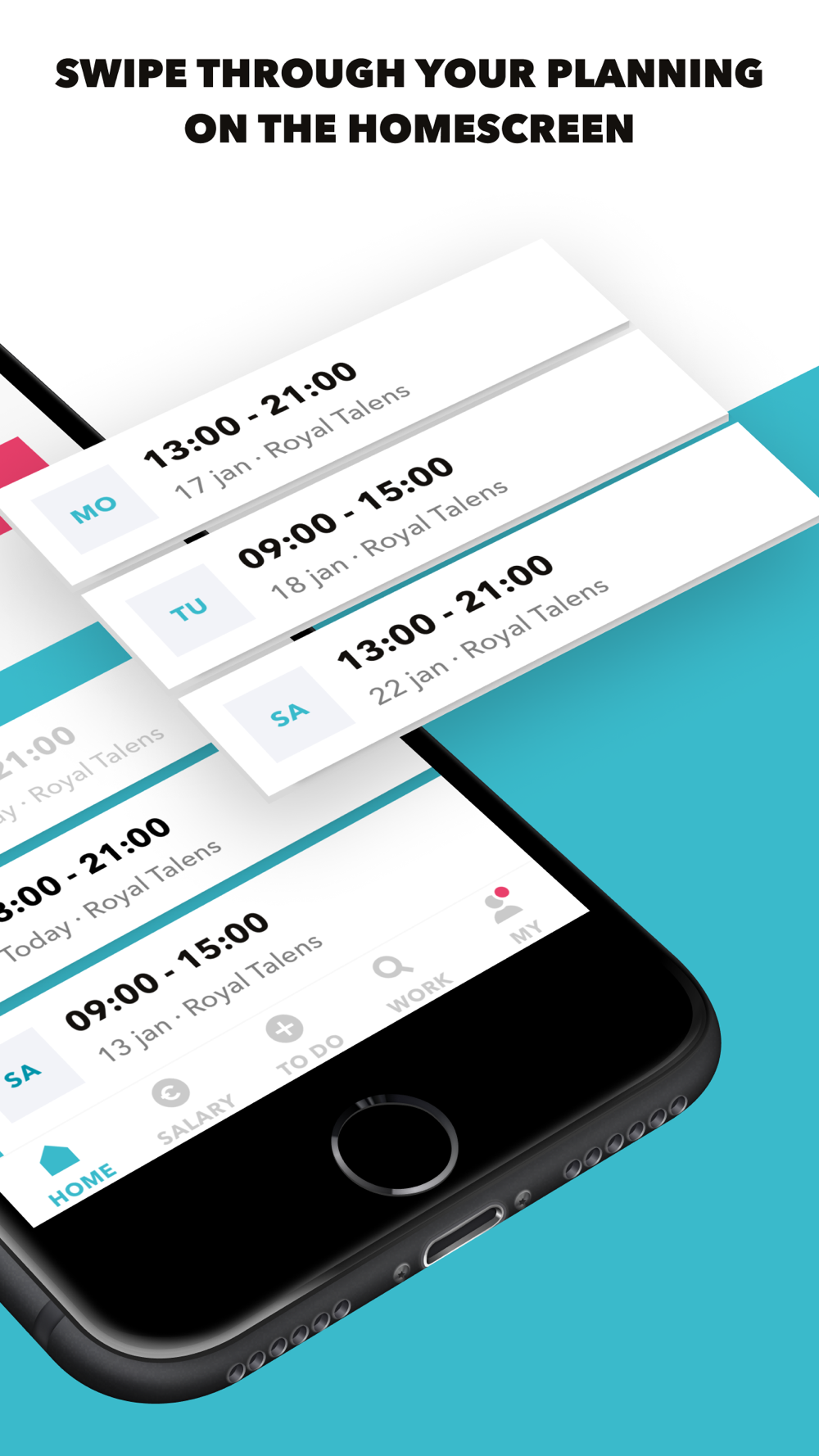 The Timing app Looking for flexible work, a full-time job, or a part-time job for the holidays? With the Timing app, you can always find work, anytime! If you already have a job with Timing, then this app is the place where you can manage everything related to your work. A new job with Timing Time for a new challenge? With over 3,000 job vacancies, there's always work available near you. Through the app, you can easily register with Timing in just a few clicks and apply directly for a job that perfectly matches your preferences. Whether you want to work in the hospitality, logistics, retail, healthcare, or any other industry, finding work has never been so fast and easy! Always work. Always. Have you applied for one of our job vacancies? We will immediately start working on placing you in the job or part-time position you applied for as soon as possible. If that's not possible, we will explore suitable alternatives together with you. Because that's our promise: We always have work. Always. Everything for your work If you've found work through Timing, the app makes everything a little easier. In the app, you can manage everything related to your work. Always and everywhere. Stay informed every day With this app, you can easily see when you need to work. Click on a shift to view all the details. Tracking hours and clocking in is just a matter of a few clicks with this app. Everything for me Through the app, you receive personal messages and easily approve important documents. By installing the app, you'll never miss any important information that is relevant to you and your work. Work that suits you We believe it's important that you feel comfortable in your position. If we find a vacancy that suits you well, we will let you know! This way, you can be sure that you always have a job that matches your interests and skills. Payday! Every Wednesday, you'll receive your pay for the previous week. You can easily view all your pay stubs, including your worked hours and earned salary. Leave Time for a well-deserved vacation or a week off for renovation? Using the 'Do' menu, you can quickly indicate when you want to take your vacation hours. Absence Woke up with a little flu? In the app, we explain easily what you need to do when you want to report sick. In short, with the app, you can manage everything in one place. That's convenient! See you soon!
