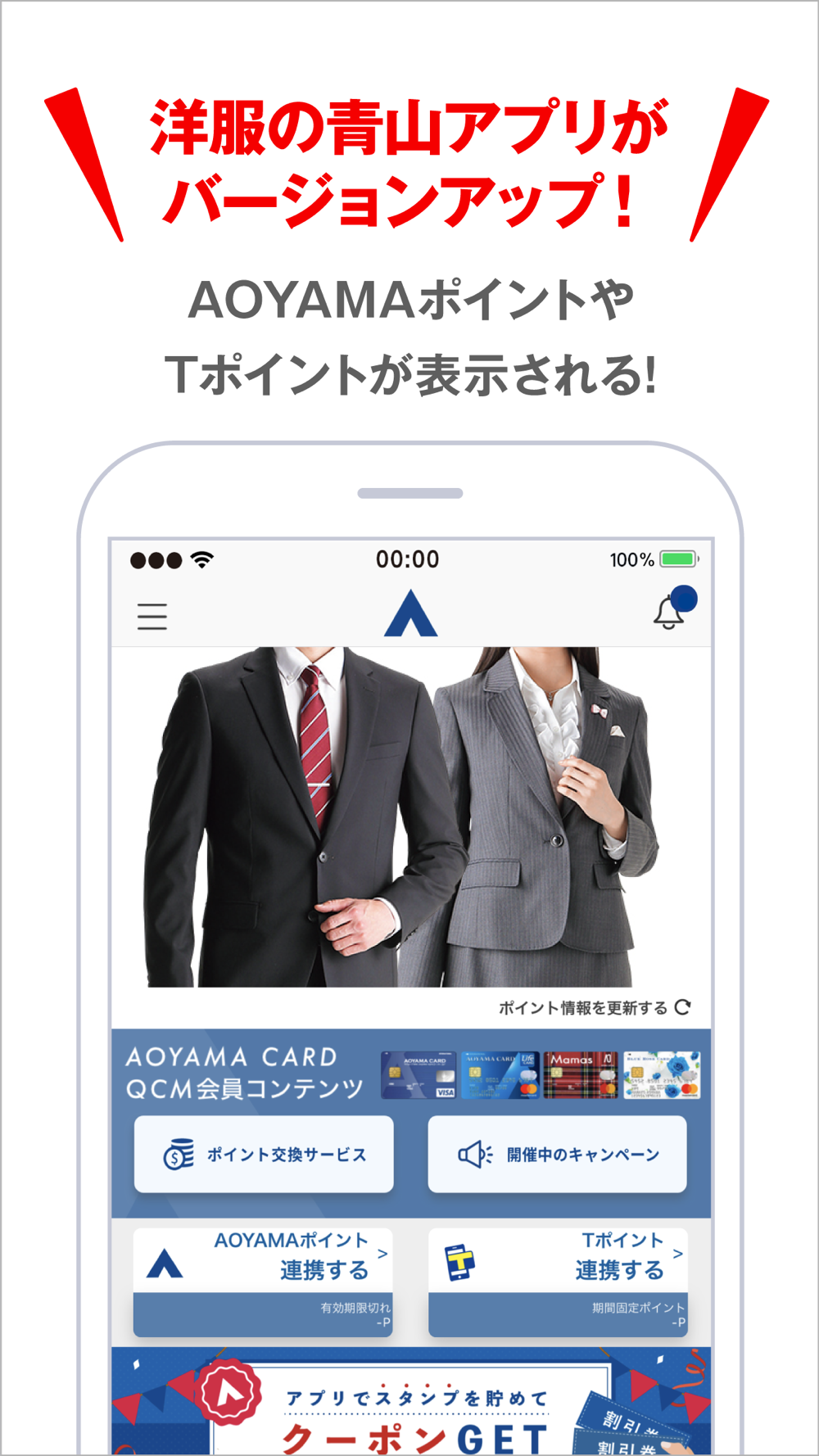 アプリに洋服の青山会員情報を連携すると…