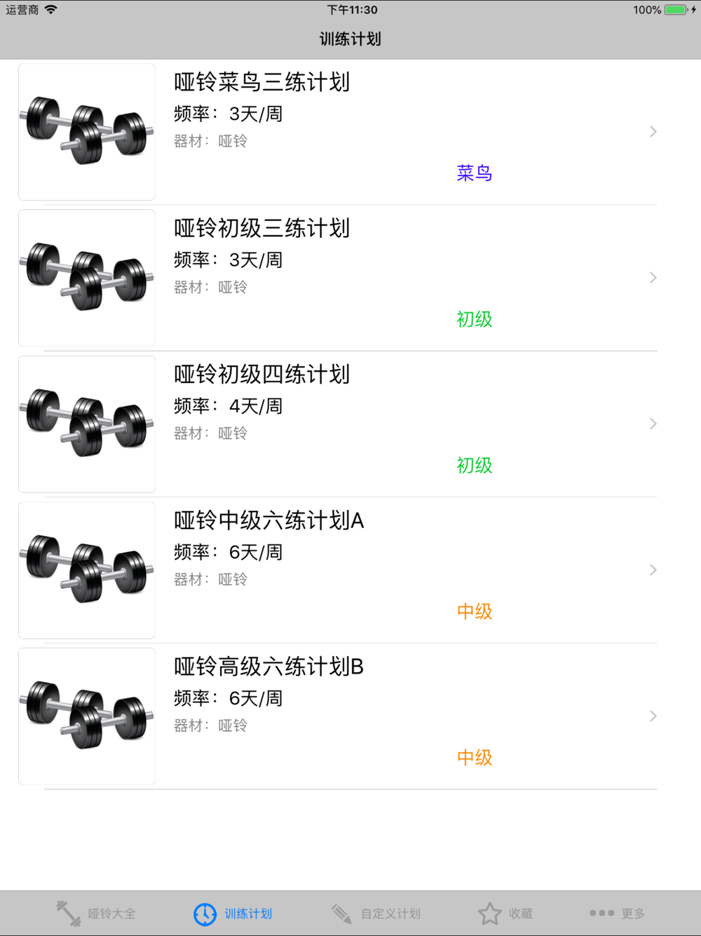并提供来自健身教练推荐的5个参考计划。满足不同的哑铃爱好者的需要。