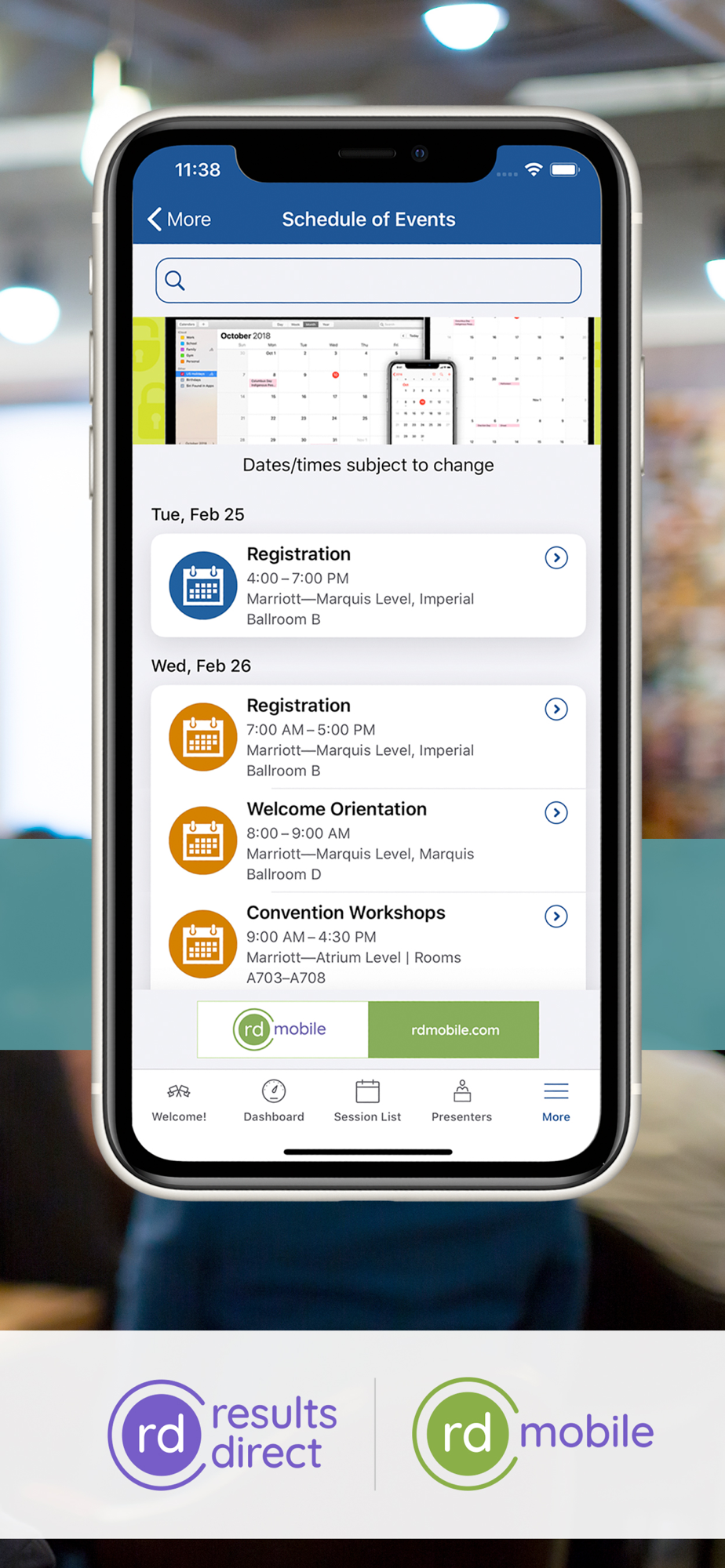 DCA Events is the official mobile app for DCA meetings and events. With this app, you can take advantage of features that will help you make the most of your time and keep you informed with the latest information about our events. Each event is different, but some of the features that will be available include: