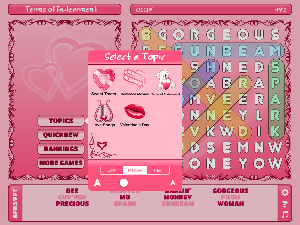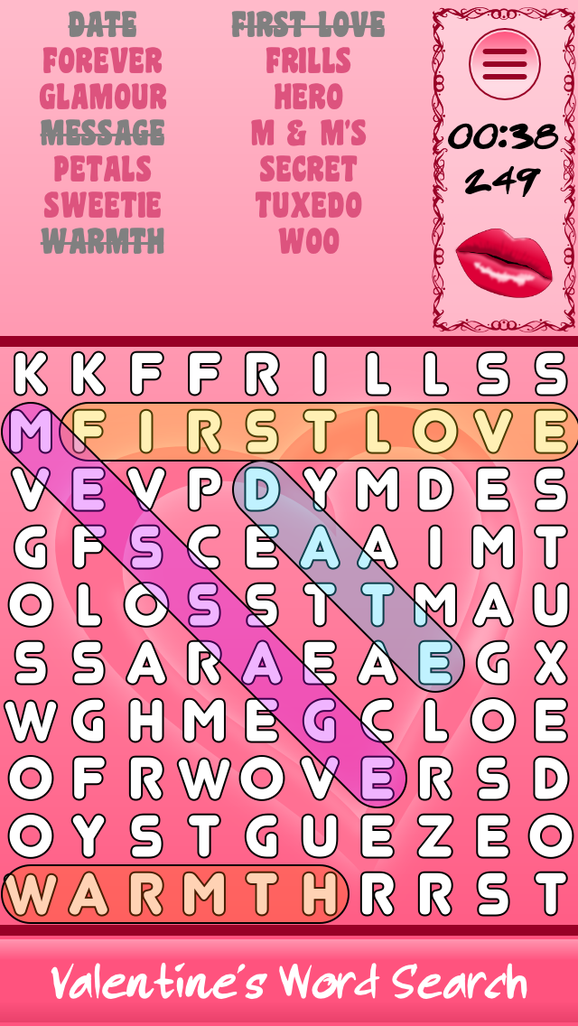 Special Valentine's version of Word Search. You will likely find yourself playing this game long after valentine's day. With Online High Scores!
